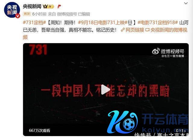 领先恭喜电影《731》定档9月18日。央视新闻发布,排面拉满,看来不会再有任何扼制了。