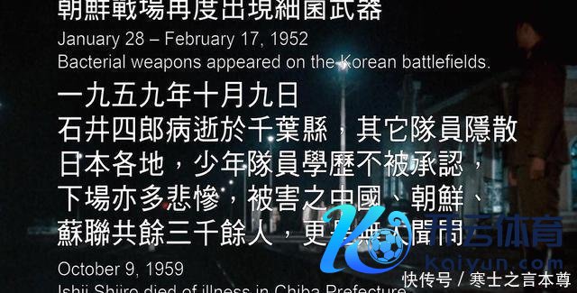 片尾字幕更是凄怨:1945年8月11日至15日,撤退专用货车共发车十五次。他们几天后抵达了日本。石井四郎在1945年12月回故土千叶县的途中,被好意思军拿获。但1946年他与好意思军达成公约,用“讨论效果”算作交换条目,掩盖了“战犯”审判。1946年6月,哈尔滨因731队列古迹残留的老鼠跳蚤细菌传播,发生鼠疫。1947年4月10日,好意思军见知苏军,石井四郎等东说念主不知所终,731队列不可算作“战犯”惩办。1951年,石井四郎抵达朝鲜战场。1952年1月28日至2月17日,朝鲜战场再度出现细菌火器。1959年10月9日,石井四郎于千叶县病逝。其他731队列成员则隐散日本各地。而被他们谗谄的中国、朝鲜、苏联东说念主民达到3000余东说念主。