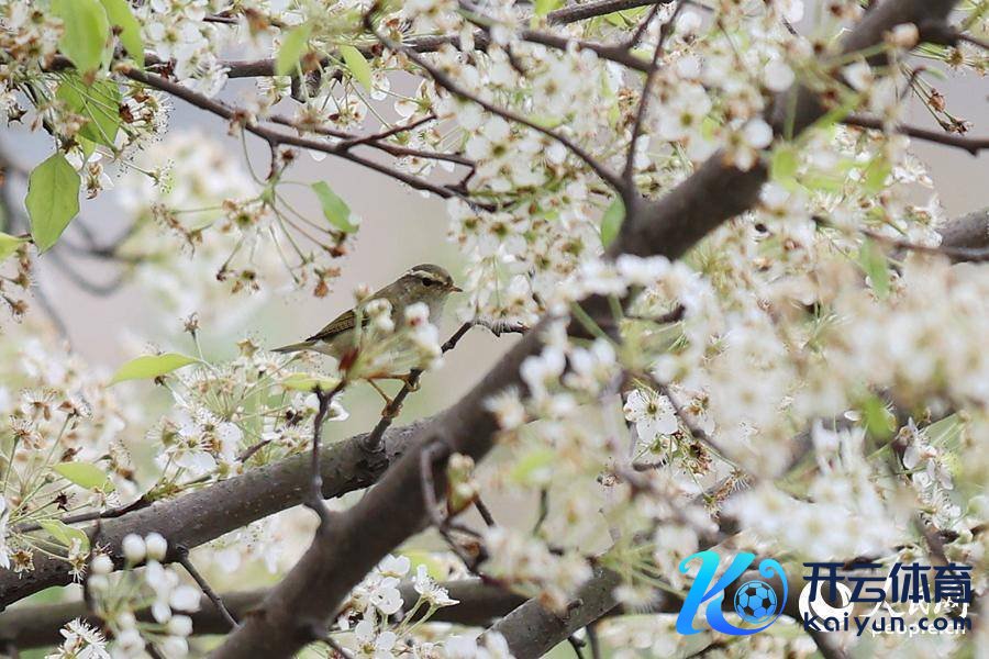 黄眉柳莺在梨花枝端流连。东说念主民网记者 陈博摄