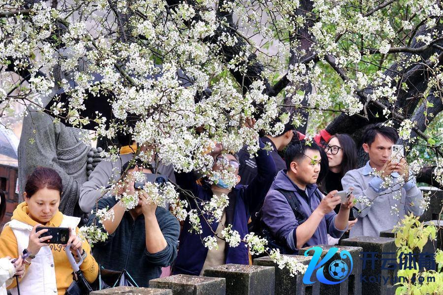正午技能,步入景区,放眼望去,枝端梨花重重叠叠、素净端淑,微风轻拂间,花瓣簌簌飘落,清浅花香萦绕鼻尖……白花瑕玷,蜂蝶绕枝,鸟雀流连,阳光穿透花枝,在青石板路上投下斑驳花影,寺院静谧与春日欲望相融,让东说念主心旷神怡。梨树下,市民旅客三五成群,或身着汉服取景拍摄,或静坐花劣品春赏景,尽情享受闹中取静的春日好意思好时光。
