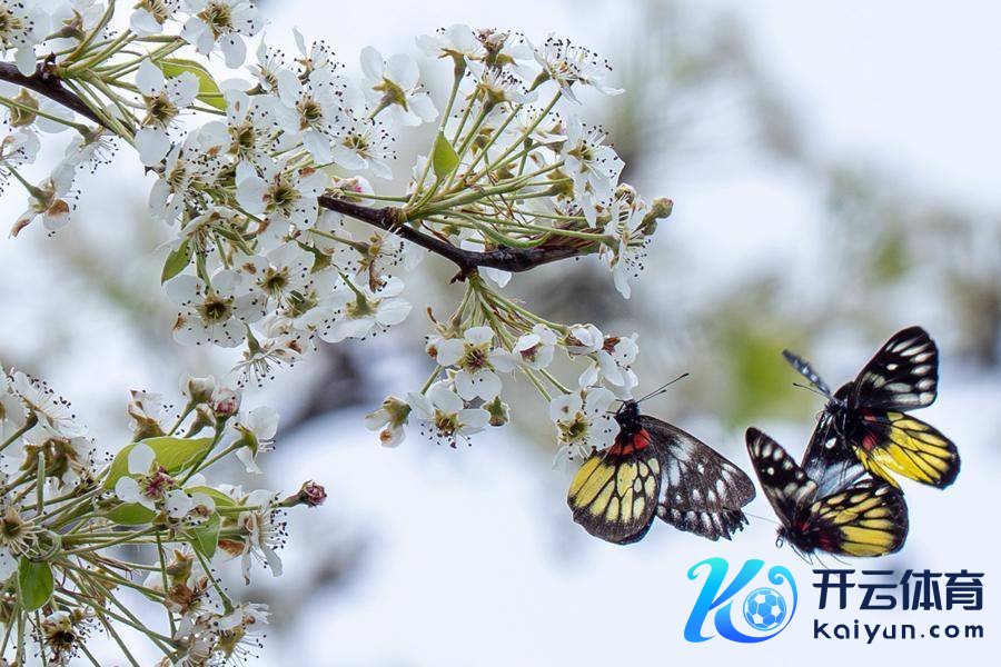 报喜斑粉蝶围绕着梨花嬉戏打闹。张立勤摄