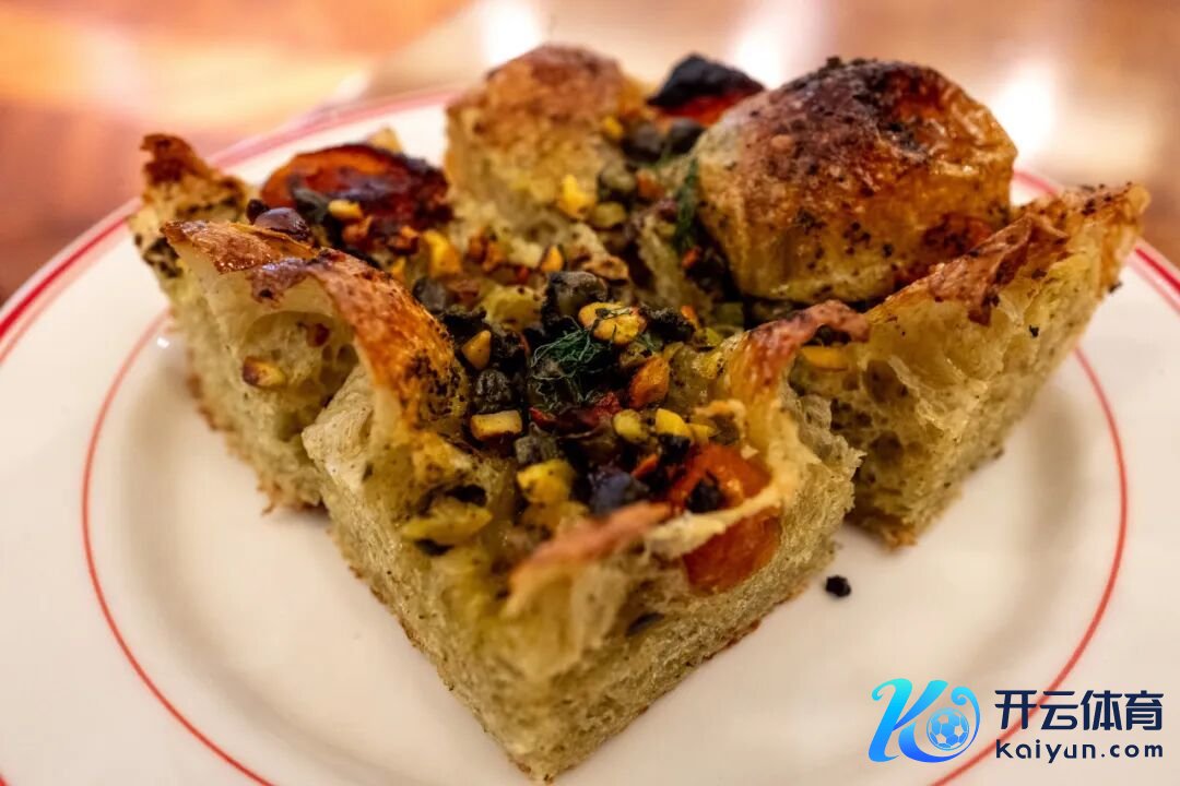 罗勒莳萝佛卡夏的重量倒是很大,适合算作责任餐。包体上撒了莳萝和松子仁,全体是咸口的,还能在面包里吃到酸甜的杏干,档次感很强。