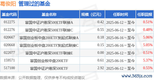 葛俊阳先生:中国国籍,商讨生、硕士。自2015年11月加入富国基金处分有限公司,历任助理定量商讨员、低级定量商讨员、定量商讨员、定量投资司理;现任定量基金司理。2025年06月12日担任富国中证沪港深500往复型绽开式指数证券投资基金、富国中证沪港深500往复型绽开式指数证券投资基金纠合基金基金司理。2025年6月16日起担任富国创业板中盘200往复型绽开式指数证券投资基金发起式纠合基金、富国创业板中盘200往复型绽开式指数证券投资基金基金司理。