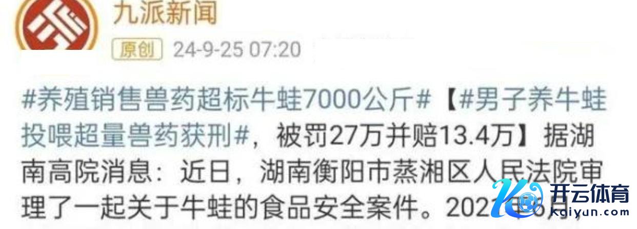 就在欧盟通报差别格鸡蛋的前几天,国内媒体刚刚曝光了湖南的一则牛蛙生息事件,7万公斤的牛蛙真的被发现兽药残留超标。