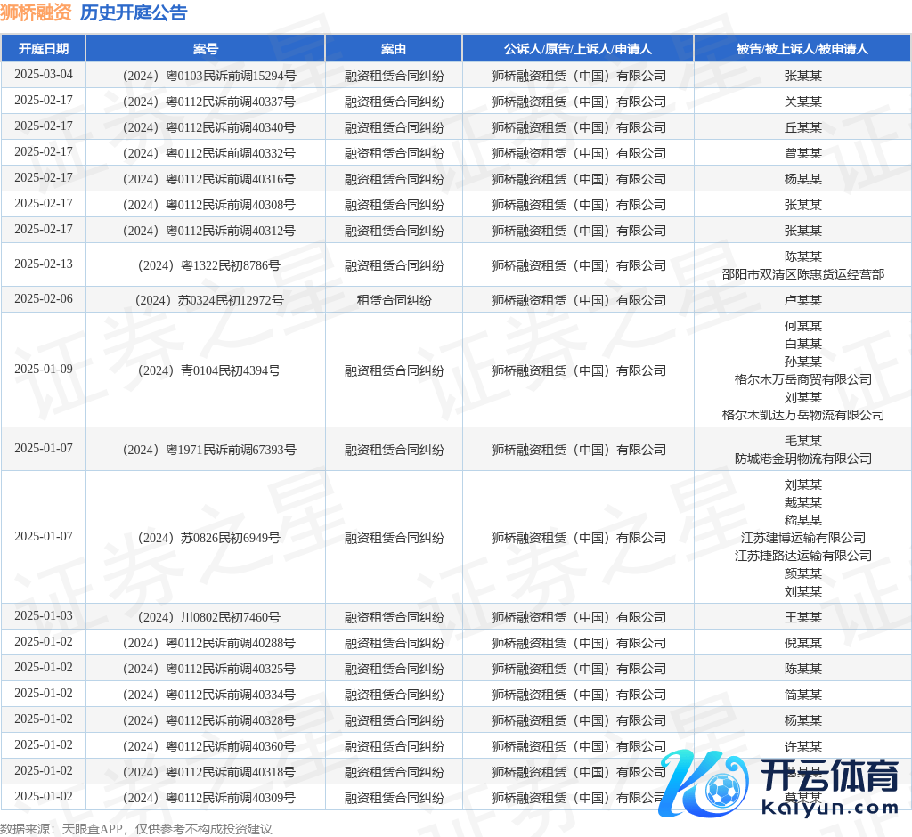 本站音书开yun体育网,字据天眼查APP披露,近日公布了一则狮桥融资租出(中国)有限公司算作原告/上诉东说念主的开庭公告,防卫本色如下: