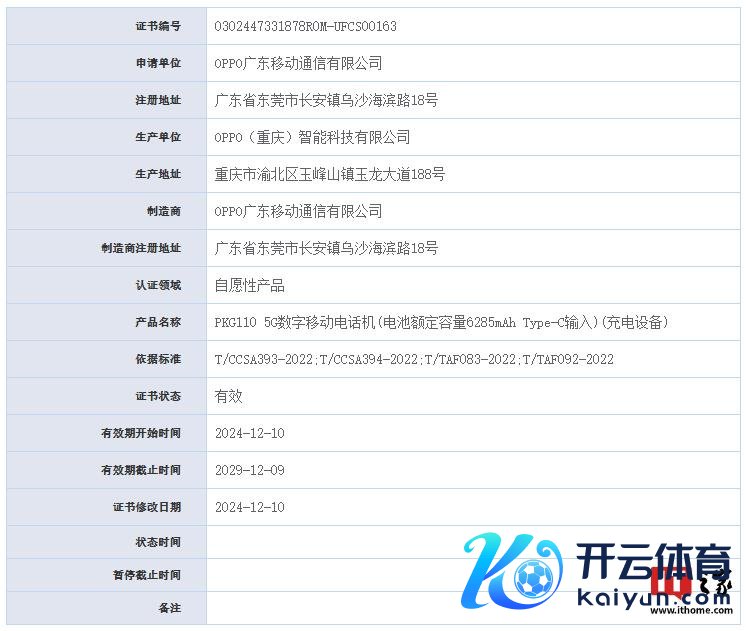 据IT之家昨日报说念,OPPO“PKG110”手机已通过 UFCS 交融快充公约认证,从型号来看展望为一加 Ace 5。关联页面流露,新机电板额定容量为6285mAh,吸收 Type-C 接口输入。