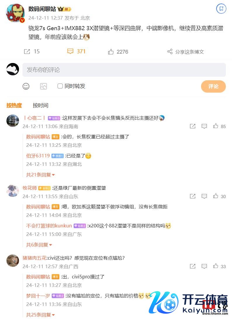 博主在指摘区中回应了部分网友的问题:针对后续厂商推出的新机“长焦”镜头是否越来越迫切,博主称“会的,长焦权重也曾向上主摄了”;针对新机长焦设立(网友称是绿厂最新的极度潜望),博主回应“嗯,欧加系这颗潜望不作念浮动镜组,莫得长焦微距”;针对 Civi 系列手机后续策画,博主暗示“出,Civi 5 Pro 摸过了”。