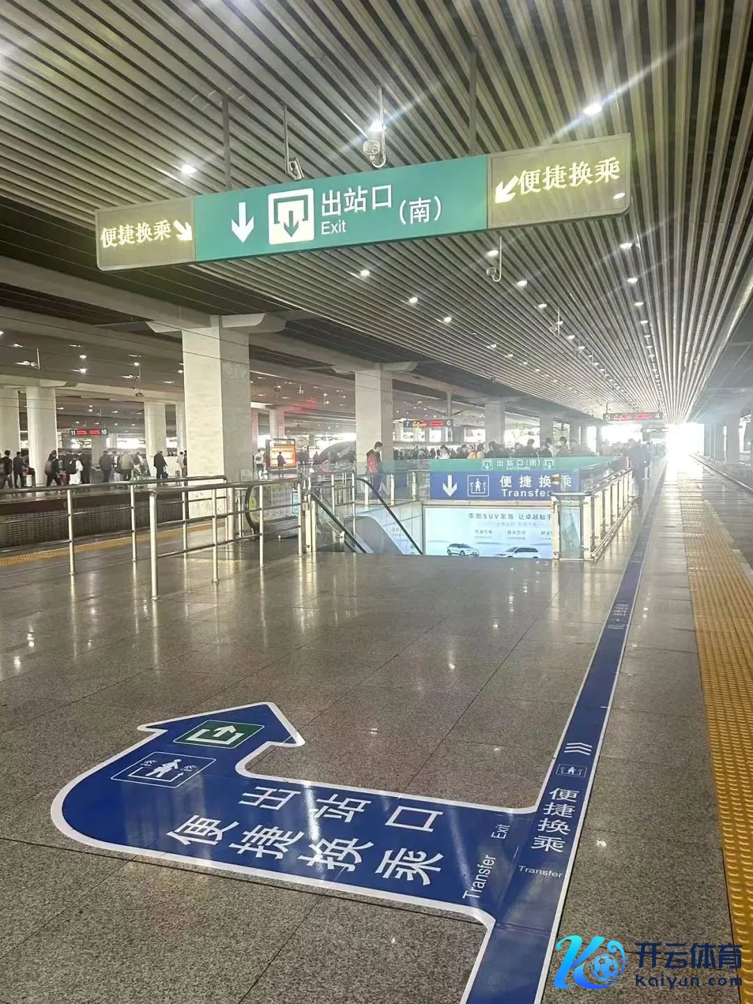 收支站更浮浅啦!为了给进站的搭客提供更直不雅、更严防标导向,广州南站在出站口增设了蓝色线条,蓝线等于搭车指引线,表明了搭客乘坐高铁、换乘地铁的道路。搭客阐发大地上的箭头标的的指令,就能快速选用我方进站大略换乘的道路。