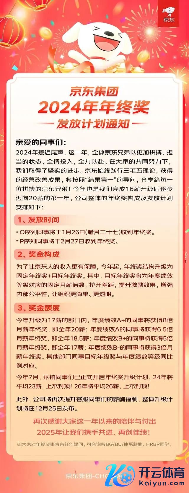 12月23日,京东集团公布2024年年终奖披发打算见知。本年是京东集团完成16薪升级后徐徐迈向20薪的第一年。