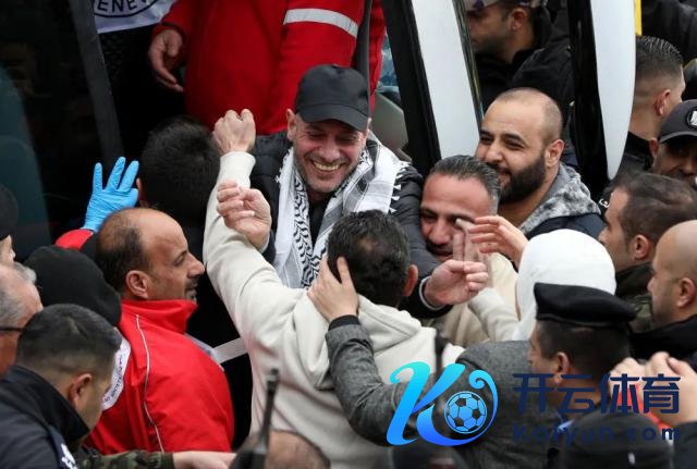 2 月 8 日,在巴勒斯坦约旦河西岸城市拉姆安拉,东说念主们接待以色列开释的巴方被扣押东说念主员。新华社发(艾曼 · 诺巴尼摄)