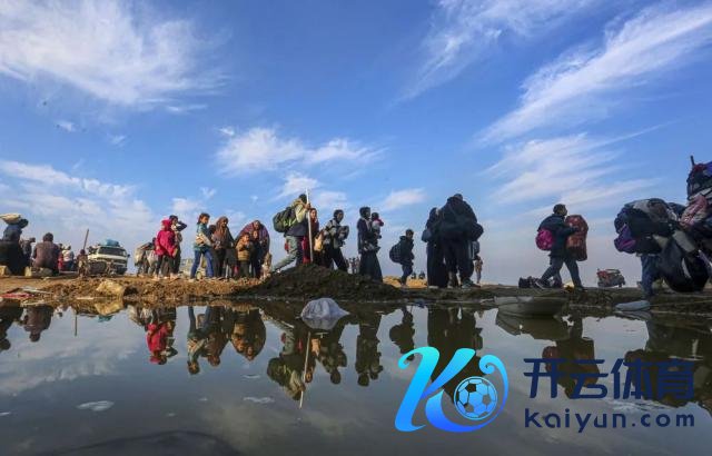 1 月 28 日,在加沙地带中部努赛赖特苍生营隔壁,流寇异域的宇宙行进在复返加沙地带北部的阶梯上。新华社发(里泽克 · 阿卜杜勒贾瓦德摄)