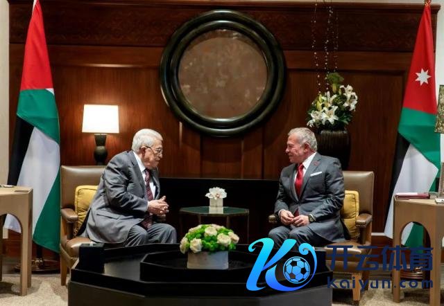2 月 5 日,在约旦都门安曼,约旦国王阿卜杜拉二世(右)会见到访的巴勒斯坦总统阿巴斯。新华社发(约旦王宫供图)