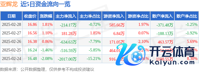 本站音信,完了2025年2月28日收盘欧洲杯体育,亚辉龙(688575)报收于16.86元,高潮1.81%,换手率3.05%,成交量17.38万手,成交额2.98亿元。