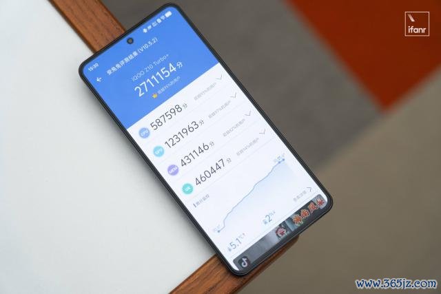 性能方面,iQOO Z10 Turbo+ 搭载天玑 9400+ 移动平台和 iQOO 自研电竞芯片 Q2 的双芯组合,常温环境下安兔兔跑分为 2711154。