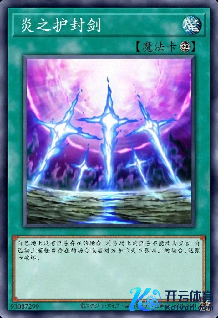 护封剑系列的魔法、罗网卡,最经典的代表即是光之护封剑,其繁衍的手足卡还有暗之护封剑,都是大要拖回合的成果卡。而本篇咱们举的例子,也属于护封剑系列,是炎之护封剑。