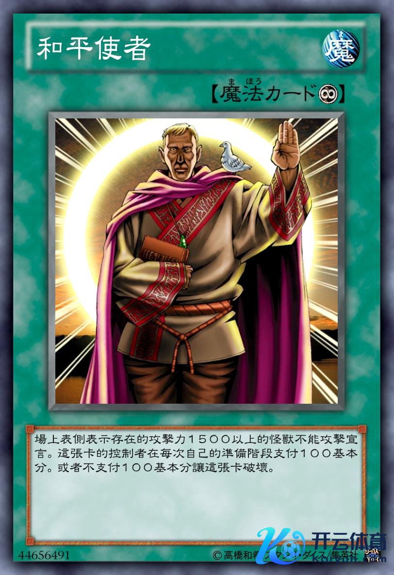 和顺使臣这张罗网卡是免伤卡,和平使臣这张魔法卡则是对具有中高档报复力怪兽的铁心卡,惟有报复力朝上1500点,就不成进行报复,然而缺点亦然存在的,发动这张卡的玩家每次自身准备阶段就要支付100点人命值,不支付的话这张卡会被防碍掉。