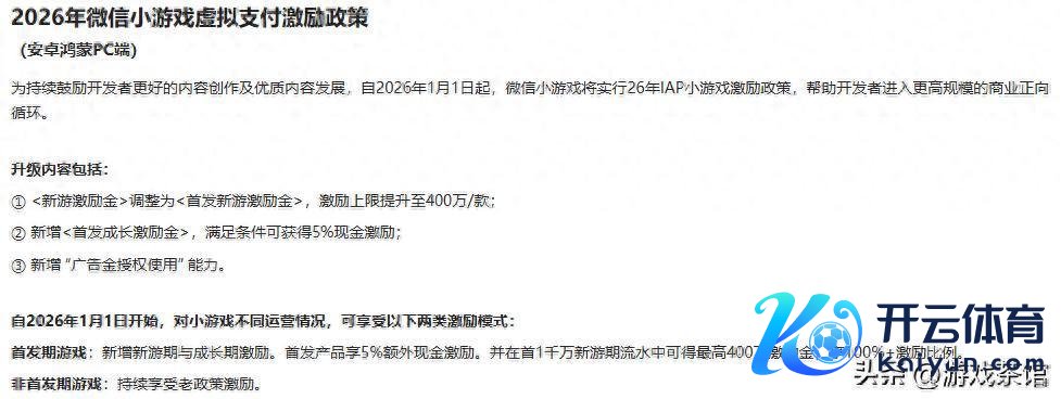 从这个视角来看,微信在当下推出IAP首发新游激勉新政,可谓方合法时。这一举措有望驱动更多厂商打造出更多极品新游开yun体育网,为玩家带来更丰富的游戏体验,同期为市集注入崭新血液,鼓吹市集朝着愈加荣华的标的迈进。