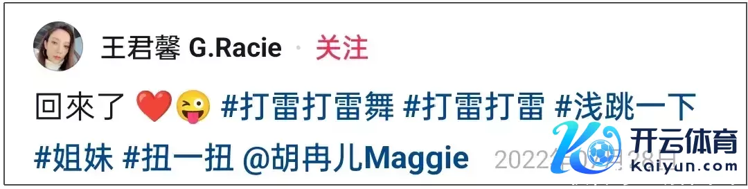 胡冉儿曾投入过跳舞节目《了不得的舞社》,尴尬的是节目组艾特的用户已失效,点击用户名加载不出任何灵验信息,这种情况一般是刊出了。