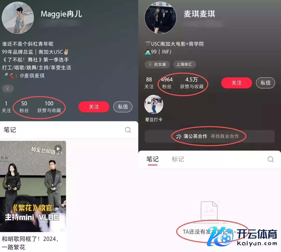 先来看某平台的两个账号,一个是责任账号,粉丝数目仅有50,主页惟有一条与胡歌责任的视频。另一个账号粉丝数目快要5000,洞开了买卖配合,点赞保藏数目有4.5万赞,然而主页大块著作,只可从一又友的记号证明账号是本东说念主用。