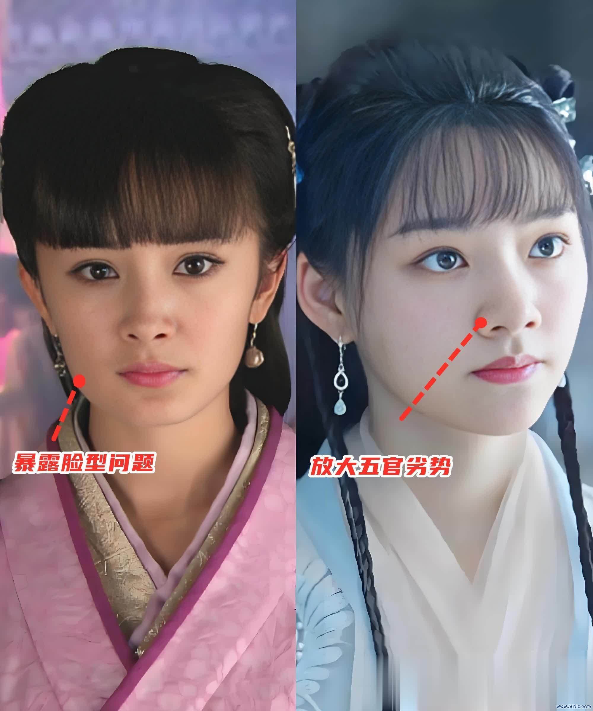对比⑴:上风在眉眼,留刘海是“误打误撞”,遮挡灵气