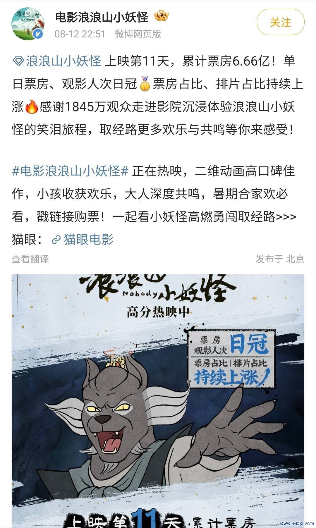 摈弃8月12 日晚上,上映11天的《浪浪山小魔鬼》累计票房也曾达到6.66亿!