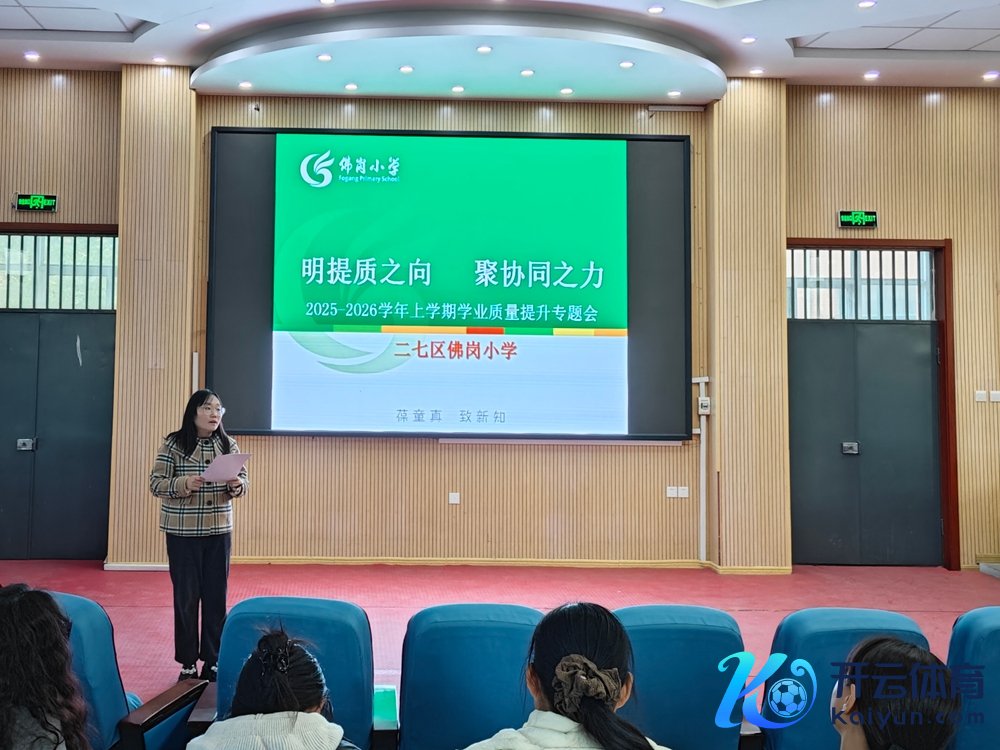 为精确会诊教诲问题,优化教诲战略,稳步普及教诲质料,12月4日,郑州市二七区佛岗小学召开了以“明提质之向 聚协同之力”为主题的学业质料普及专题会。会议聚焦课堂教诲服从与学生学业发扬,通过数据分析与战略筹议,为下一阶段教诲质料普及明确标的与旅途。