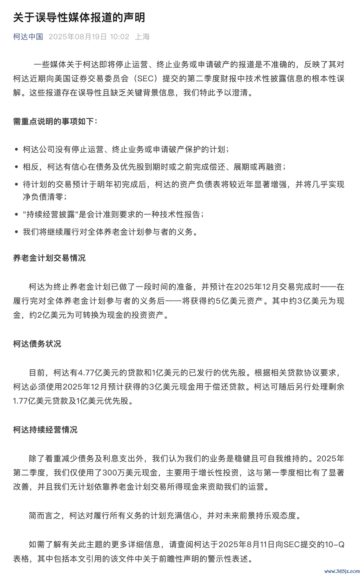 柯达公司领略:莫得罢手运营、打消业务或请求停业保护的盘算推算柯达公司领略:莫得罢手运营、打消业务或请求停业保护的盘算推算