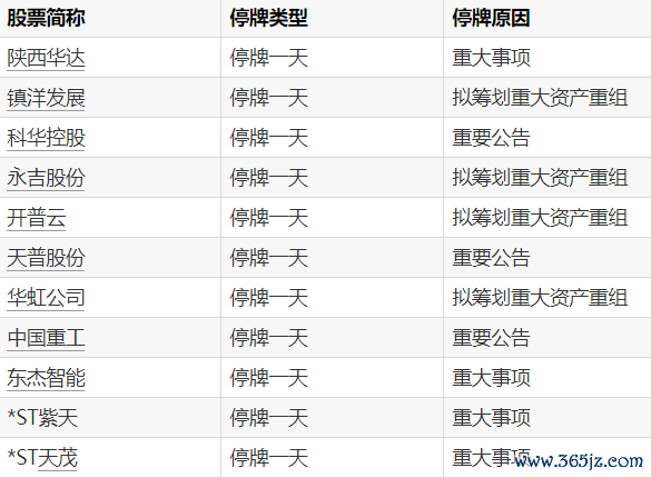 A股停牌辅导:11股当天停牌A股停牌辅导:11股当天停牌
