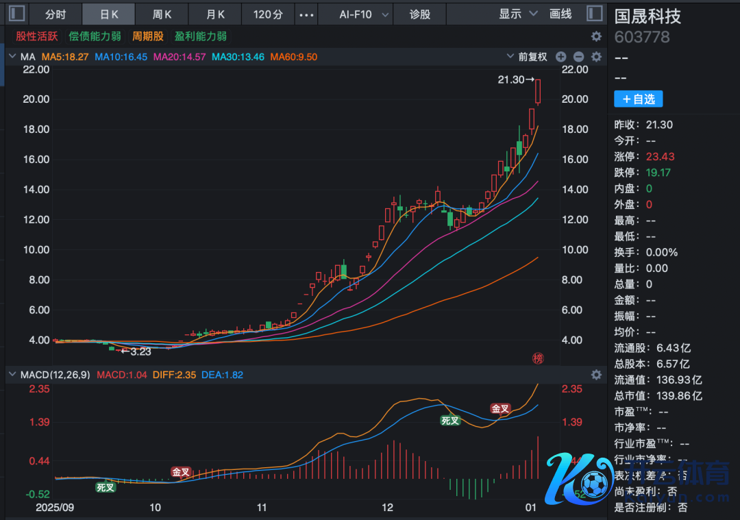 近期,国晟科技收货暴涨行情,2025年10月31日至2026年1月6日历间,公司股票5次波及股价特殊波动、1次波及严重特殊波动情形,时期累计涨幅高达370.20%,最新股价为21.3元/股,创历史新高。基于前述情况,公司按照联系限定恳求自1月7日开市起停牌核查,瞻望停牌时候不跳跃3个往改日。
