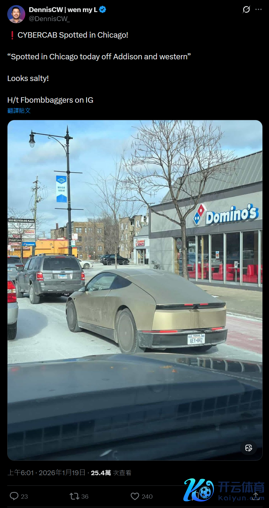 IT之家 1 月 19 日音书,汽车博主 Sawyer Merritt 今天在 X 平台发文,共享我方在好意思国芝加哥拍到的特斯拉 Cybercab 无东说念主驾驶出租车。