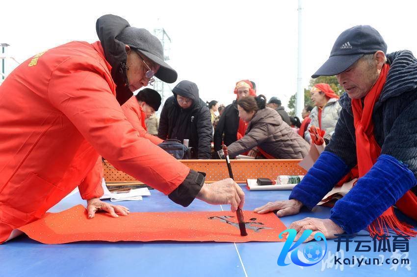 字画协会真挚义务书写对子(湖北日报客户端通信员 彭涛 摄)