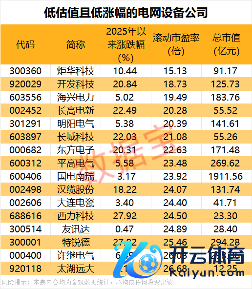 低估值且低涨幅的电网开辟公司出炉低估值且低涨幅的电网开辟公司出炉
