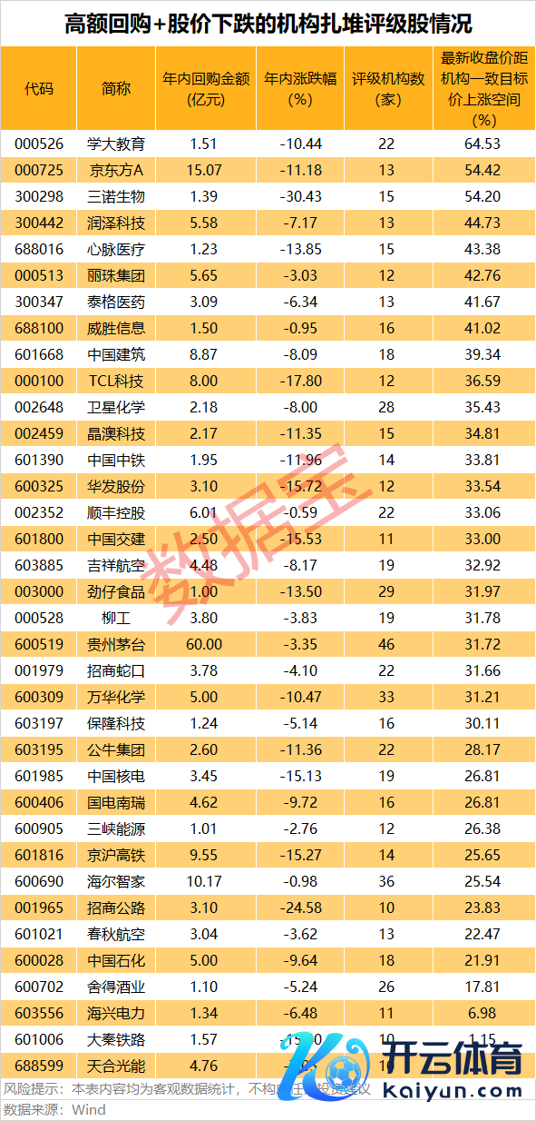 高额回购+股价下落的机构扎堆评级股出炉高额回购+股价下落的机构扎堆评级股出炉