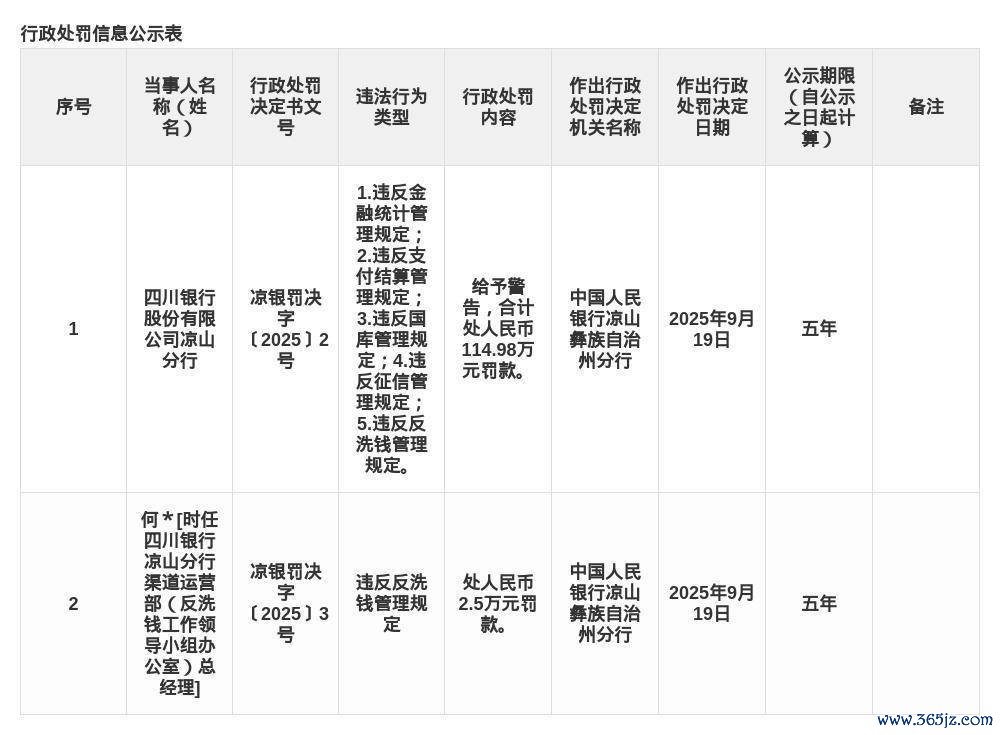针对上述积恶违法动作,中国东说念主民银行凉山彝族自治州分行对其作出警戒,并处114.98万元罚金。
